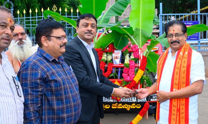 శ్రీశైలదేవస్థానం: ఆంధ్రప్రగతి గ్రామీణ బ్యాంకు శ్రీశైలం శాఖ వారు శుక్రవారం శ్రీశైల దేవస్థానానికి ట్రాక్టరును సమర్పించారు. ఈ మేరకు బ్యాంకు చైర్మెన్ ఎస్. సత్యప్రకాశ్ సింగ్, కడప సదరు ట్రాక్టరును కార్యనిర్వహణాధికారి డి. పెద్దిరాజు కు అందించారు.ఈ ట్రాక్టరు విలువ రూ. 12 లక్షల దాకా ఉంటుందని బ్యాంకు అధికారులు తెలియజేశారు.