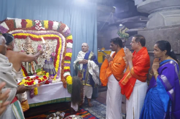 మహామంగళ హారతుల తరువాత శ్రీ స్వామిఅమ్మవార్ల ఉత్సవమూర్తులను స్వామివారి ఆలయ ముఖ మండపములో ఉత్తర ముఖంగా వేంచేబు చేయించి విశేష పూజాదికాలను జరిపారు.