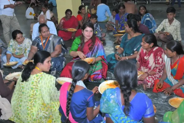 భక్తులతో కలిసి క్యూలైన్లో నిలబడి, సహపంక్తిగా భోజనం చేసిన జిల్లా కలెక్టర్