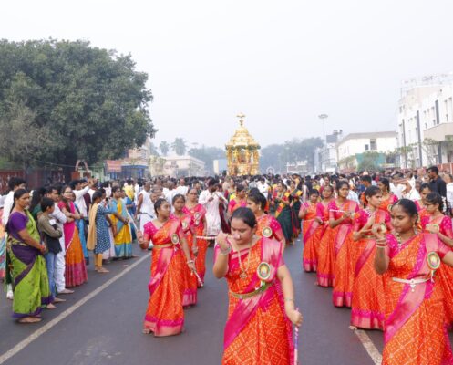 సంప్రదాయ కళల పరిరక్షణలో భాగంగా రథోత్సవంలో పలు కళా బృందాల కోలాటం, డోలు వాయిద్యం మొదలైన జానపద కళారూపాలు కూడా ఏర్పాటు చేశారు. రథోత్సవంలో సంప్రదాయ నృత్యంఏర్పాటు చేశారు.